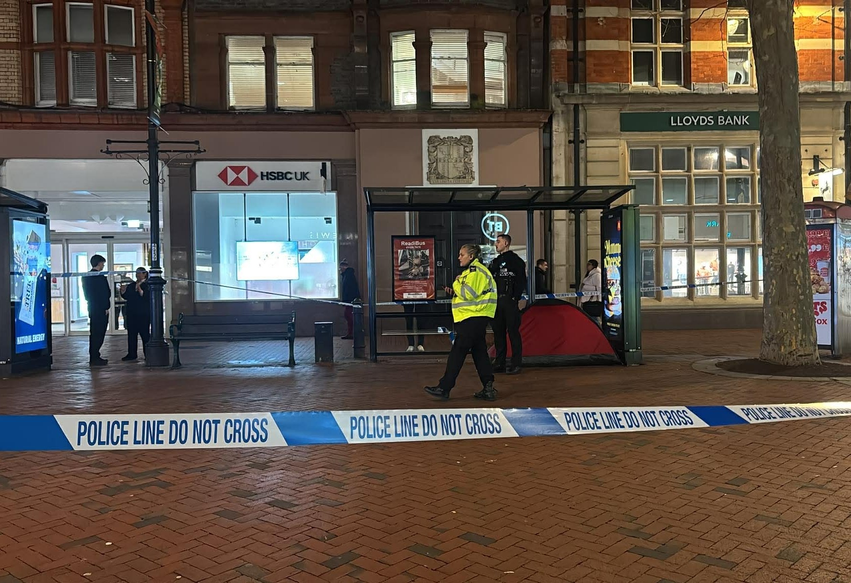 The cordon was put in place at about 19:30 GMT around a red tent and former bus shelters in the town centre. South Central Ambulance Service also attended.