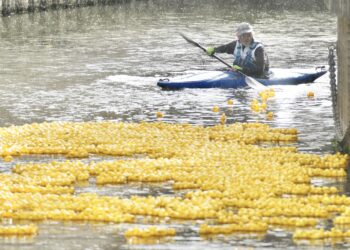 Read moreDetailsCrowds cheered as the rubber racers bobbed their way toward the finish line.