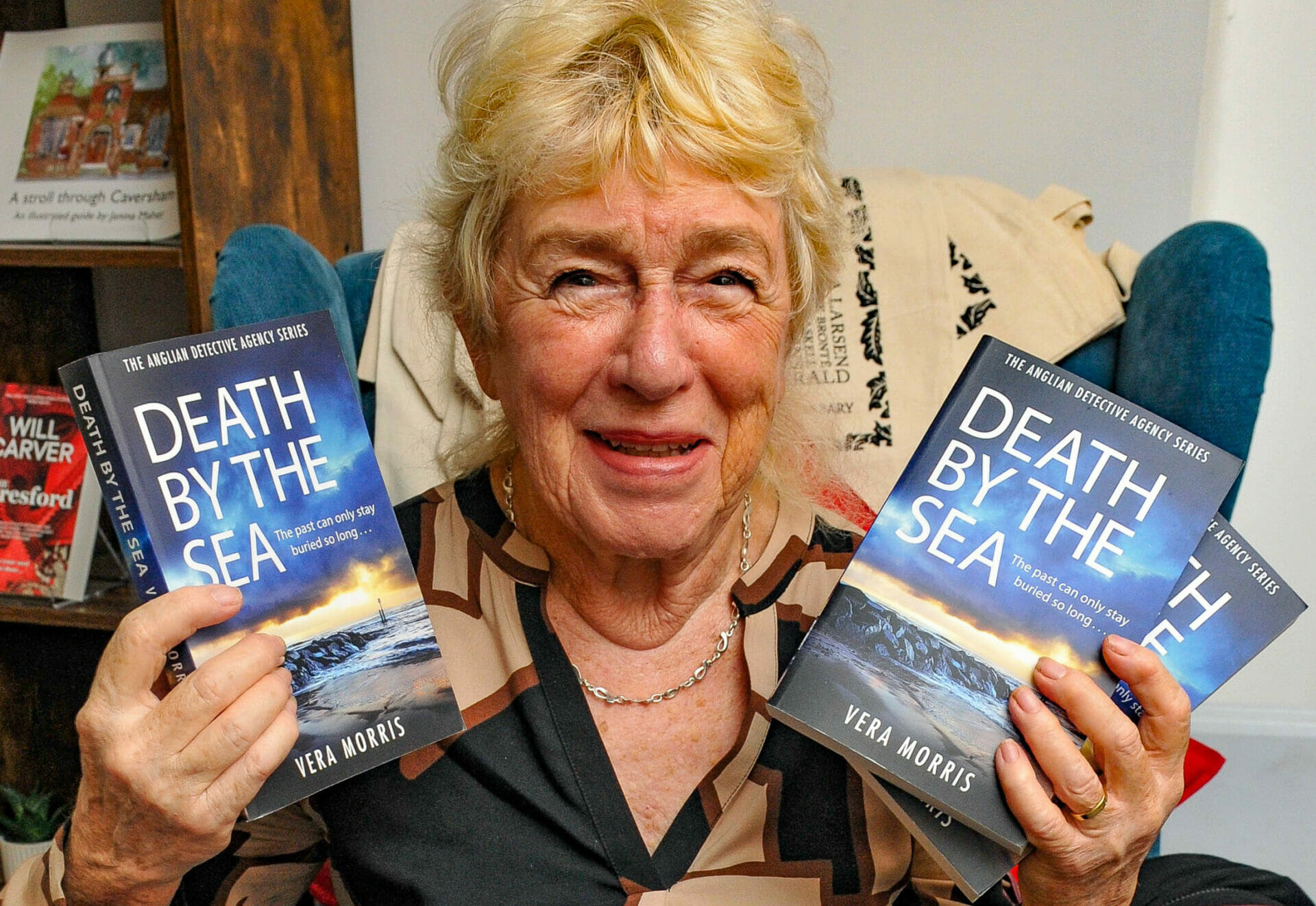 Vera Morris visited Fourbears Books in Prospect Street to sign copies of her latest novel, Death By The Sea.