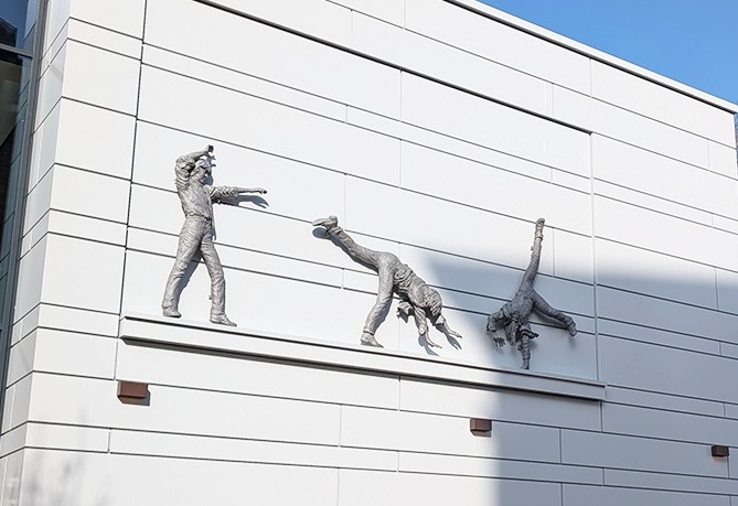 The Cartwheeling Boys sculpture, gifted to Reading by Düsseldorf, Germany, in 1981, was damaged by Storm Eunice in 2022.
