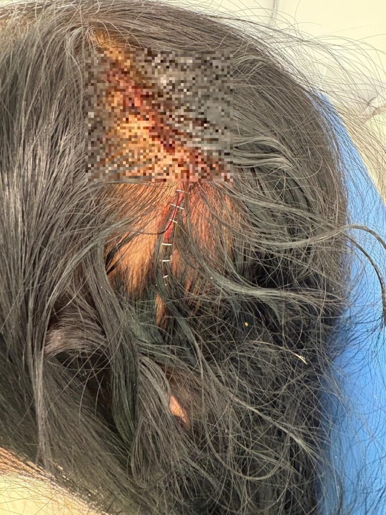 “I had to have eight staples put in my head, and hey’ve been taken out by the GP.”